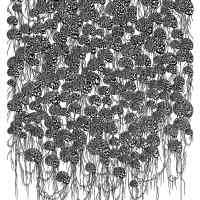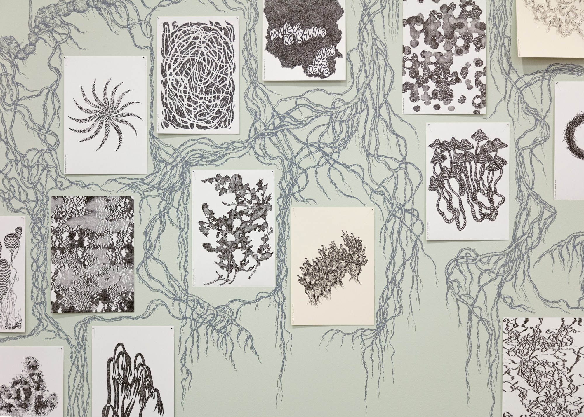 Ma source d’inspiration première est mon environnement proche, le jardin, la forêt. La dimension du proche, du petit, de l’accessible – c’est là ou je peux aller à pied. Dans ces lieux je vadrouille, je contemple, je m’attarde sur les détails des écorces, des mousses, des lichens et champignons, des fleurs de bord de chemin, des insectes. Je me fais discrète, je ne suis pas seule. Je ne prélève rien ou presque rien, j’emporte des souvenirs, des sensations, des émotions et des images qui flottent, se déforment, muent, et parfois se transforment en obsession. La série La vie du bois mort me vient d’une de ces vadrouilles de laquelle je suis rentrée avec l’idée fixe de dessiner une souche qui grouille de vie.