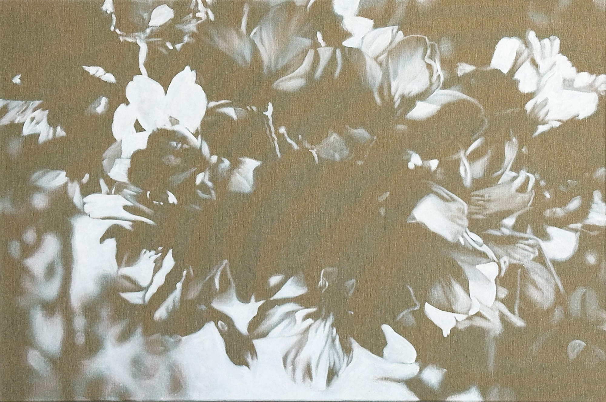 Force et fragilité étroitement mêlées, fugacité et éternel recommencement confondus, la nature est le grand sujet de la Grisone qui a ouvert les yeux au milieu du spectacle grandiose et menacé de ses Alpes natales. Sa manière d'appréhender l'homme et sa relation au monde, son empathie pour la nature sauvage et vulnérable viennent de là. Mais chaque paysage a son caractère propre et bien particulier. Dans la saturation végétale parfois étouffante d'Antanana, son sentiment de nature se fait profondément romantique et son « écriture » lyrique, tandis que sa palette se restreint volontairement à l'austérité du noir et blanc et que ses matières fluides évoluent dans un registre tout en légèreté, sans épaisseurs ni empâtements mais des estompages et des « lavages » qui rappellent les brouillards humides des montagnes tropicales. La peinture à l'huile demeure son arme favorite, mais c'est presque en dessinatrice qu'elle la manie ici. Comme dans une caverne mystérieuse, les photographies prises sur place en guise de croquis sont projetés dans l'obscurité de l'atelier, où seules la peinture noire et la térébenthine racontent, réinventent et recomposent plus grands que nature les efflorescences et les enchevêtrements profus. Tantôt rapide et nerveux, et tantôt précis et minutieux, le geste zigzague avec gourmandise entre le net et le flou, le réel et le virtuel, le figuratif et l'abstrait. Ici les cactus paraissent étrangement anthropomorphes, évoquant un groupe de personnes agglutinées, là les ombres se font denses et ténébreuses, et là-bas le vertige floral s'écarte pour ouvrir une trouée de lumière vers des lointains indicibles. Ce n'est pas d'un paysage qu'il s'agit ici, mais bien d'une fantasmagorie végétale.