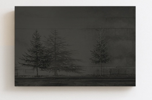 Je ne dénonce pas, je documente une mutation : celle d’un objet de croyance devenu décor, puis déchet. Par la peinture, je réinjecte du temps, de l’ambiguïté et du silence dans cette migration absurde. Le sapin, figure saisonnière par excellence, devient ici témoin du devenir des images et des croyances, à l’heure où le folklore se dilue dans le spectacle, et la nature dans la ville.