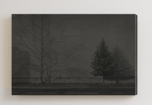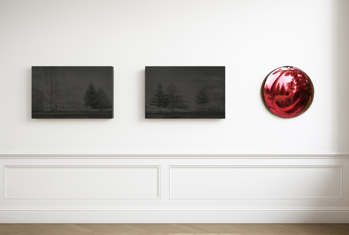 Au croisement du réel et de l’apparence, ces œuvres interrogent la destinée trouble du sapin de Noël, symbole éphémère d’un folklore consumériste, transplanté du mythe sylvestre aux marges désenchantées de la ville. Dans cette série, le conifère glisse du statut d’icône festive à celui de résidu urbain, flottant entre illusion et abandon. Le sapin de Noël devient un opérateur critique, un objet frontière qui traverse les régimes de l’image, de l’apparition et de la perte. D’arbre rituel enraciné dans la forêt européenne à déchet post- festif gisant sur l’asphalte, il condense un devenir, une temporalité fracturée, une économie du visible.