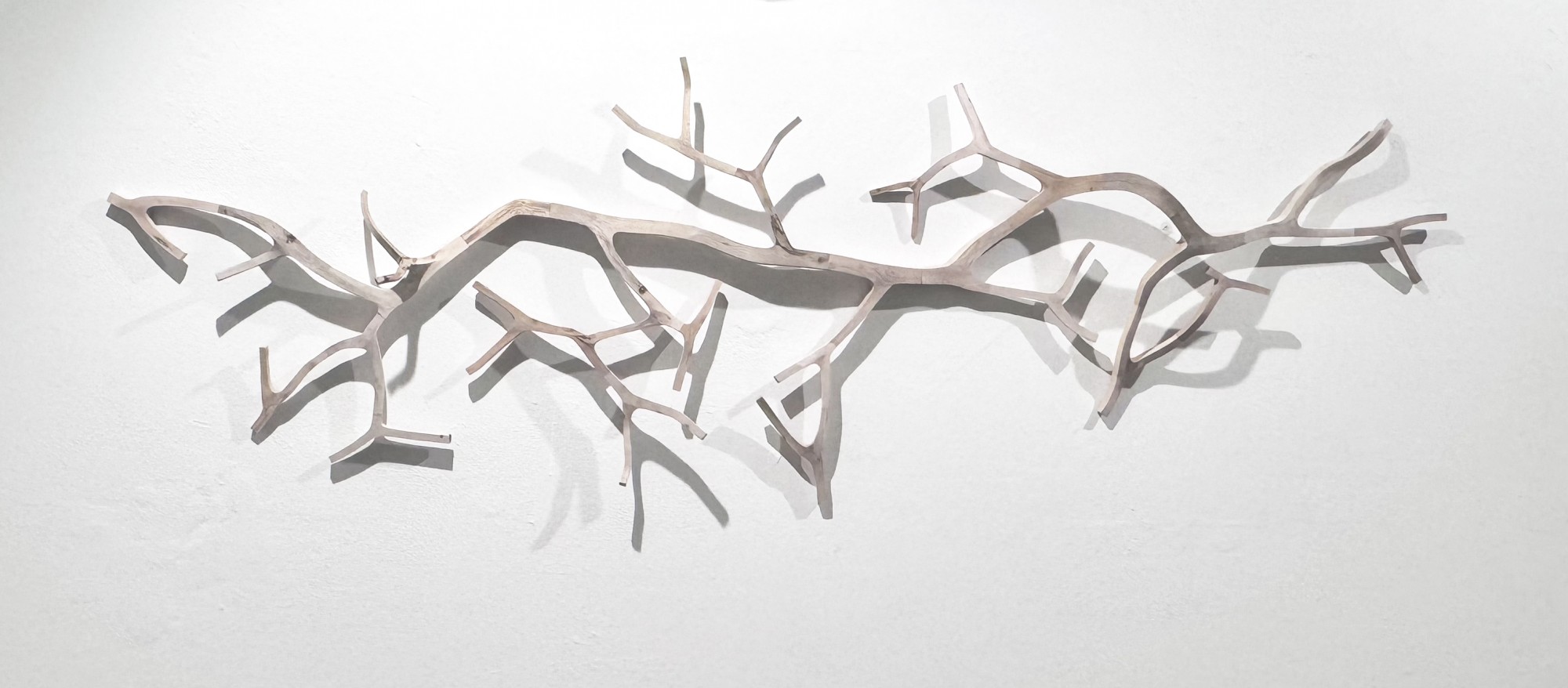 Par minces segments de section carrée qui rappellent le façonnage élémentaire des poutres, ses sculptures mettent bout à bout des segments qui tirent parti de la courbure de la branche, de ses ramifications et de ses mouvements naturels, mais leur en inventent d’autres aussi, surprenants, très graphiques et poétiques, qui les suspendent en état de grâce et de légèreté. Conjuguant chantiers de construction et histoire de l’art, ses inspirations formelles puisent aussi bien à sa fascination pour les ossatures des architectures navales et des charpentes de toitures, qu’à ses admirations artistiques contemporaines qui placent Giuseppe Penone, Toni Grand et David Nash au sommet de son panthéon personnel. Il aime aussi comparer sa démarche – lui qui oublie parfois de signer ses pièces – à celle des artistes aborigènes qui transmettent quelque chose qui les dépasse et qui est hors du temps. Car même si son langage sculptural dépouillé, silencieux et dépourvu de socles est clairement contemporain, Laurent de Pury se sent a-temporel et très loin des discours analytiques et critiques d’un certain art contemporain sur la société d’aujourd’hui. Il n’en est pas moins totalement engagé dans cette mission fondamentale de l’artiste qui est d’« entrer en résonance avec le monde ».