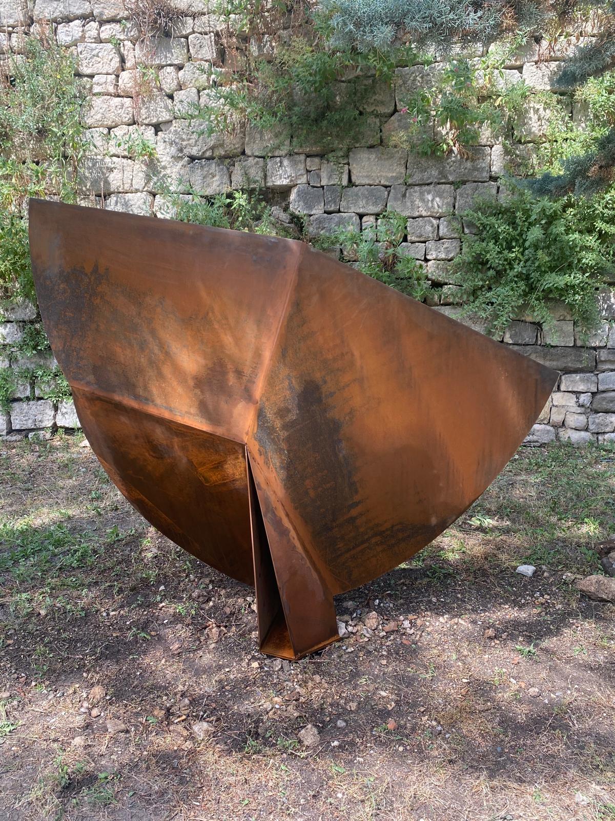 Et le sculpteur puise aux qualités de la peinture pour donner, au moyen des patines, couleur, chaleur, vie (et non expression) à ces panneaux de métal. À nous de saisir l’instant où la matière a réalisé son rêve ! Un élan maîtrisé mais gracieux s’accorde avec la perception de la lumière