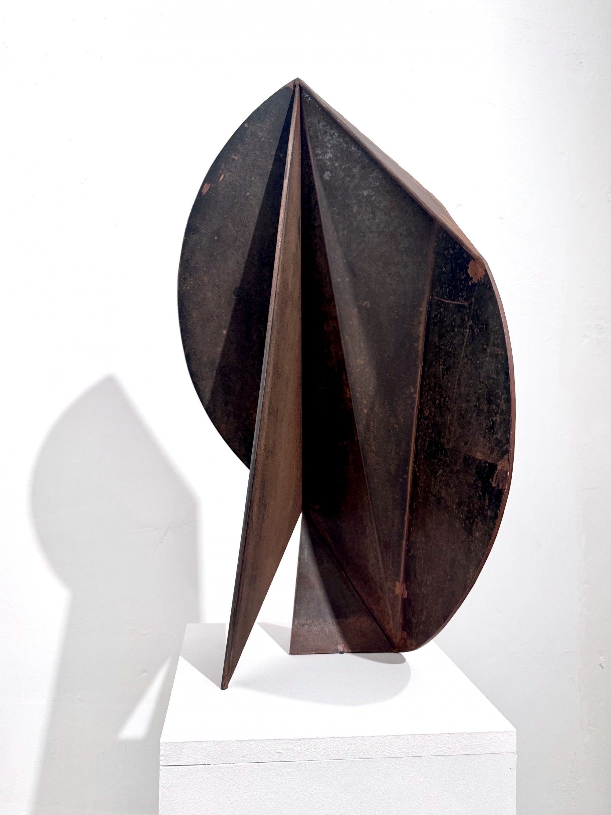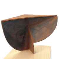 L’angle ou le pli? Dans une sculpture de Jean-Patrice Rozand, la jonction de deux plans (soudés) nous apparaît souvent comme un pli. Le pli n’est pas une ride ou une déchirure, n’est pas une crispation ou un sourire. Le pli est dessin, définition, limite: rectitude de la pensée. Il marque l’arrêt d’un plan, une butée de la lumière. Aussi, en tant qu’il fait angle, il instaure la justesse des proportions et le partage exact de l’ombre.