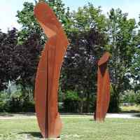 En disposant ses panneaux de métal selon des incidences subtiles, Jean-Patrice Rozand construit des pièges à lumière. Pour en déployer les nuances, en modeler la matière ou la transparence. Grâce à la maîtrise des patines, il leur confère couleur et velouté tandis qu’au fil des heures, son intensité varie, distribuant lentement les masses autour des axes constitués par la jonction des plans.