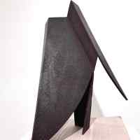 Jean-Patrice Rozand ne travaille pas des «masses» de marbre ou de granit, il n’entame pas des blocs de matière monolithique; il déconstruit et construit, il coupe et découpe des plans qu’il assemble et semble plier comme des feuilles ; il pose, élève et déploie dans l’espace - Comme si des feuillets d’argile s’étaient coalisés, des cristallisations conjuguées, comme si des fibres s’étaient fossilisées, des nervures… et des ailes.
