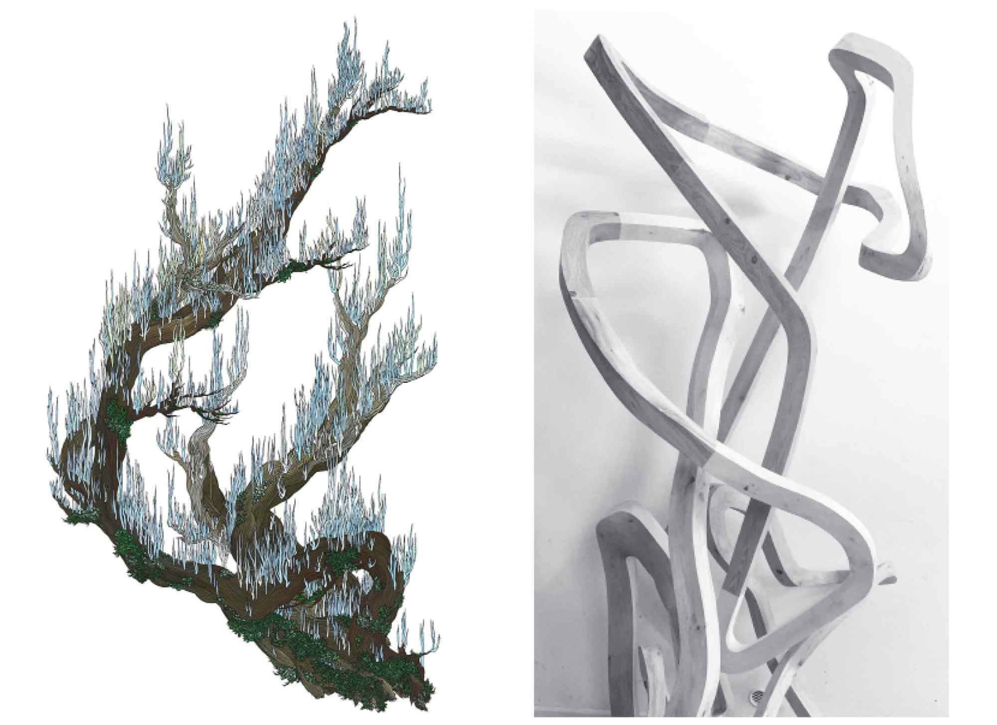 Extrait texte ACPar minces segments de section carrée qui rappellent le façonnage élémentaire des poutres, ses sculptures mettent bout à bout des segments qui tirent parti de la courbure de la branche, de ses ramifications et de ses mouvements naturels, mais leur en inventent d’autres aussi, surprenants, très graphiques et poétiques, qui les suspendent en état de grâce et de légèreté. Car même si son langage sculptural dépouillé, silencieux et dépourvu de socles est clairement contemporain, Laurent de Pury se sent a-temporel et très loin des discours analytiques et critiques d’un certain art contemporain sur la société d’aujourd’hui. Il n’en est pas moins totalement engagé dans cette mission fondamentale de l’artiste qui est d’« entrer en résonance avec le monde ».
