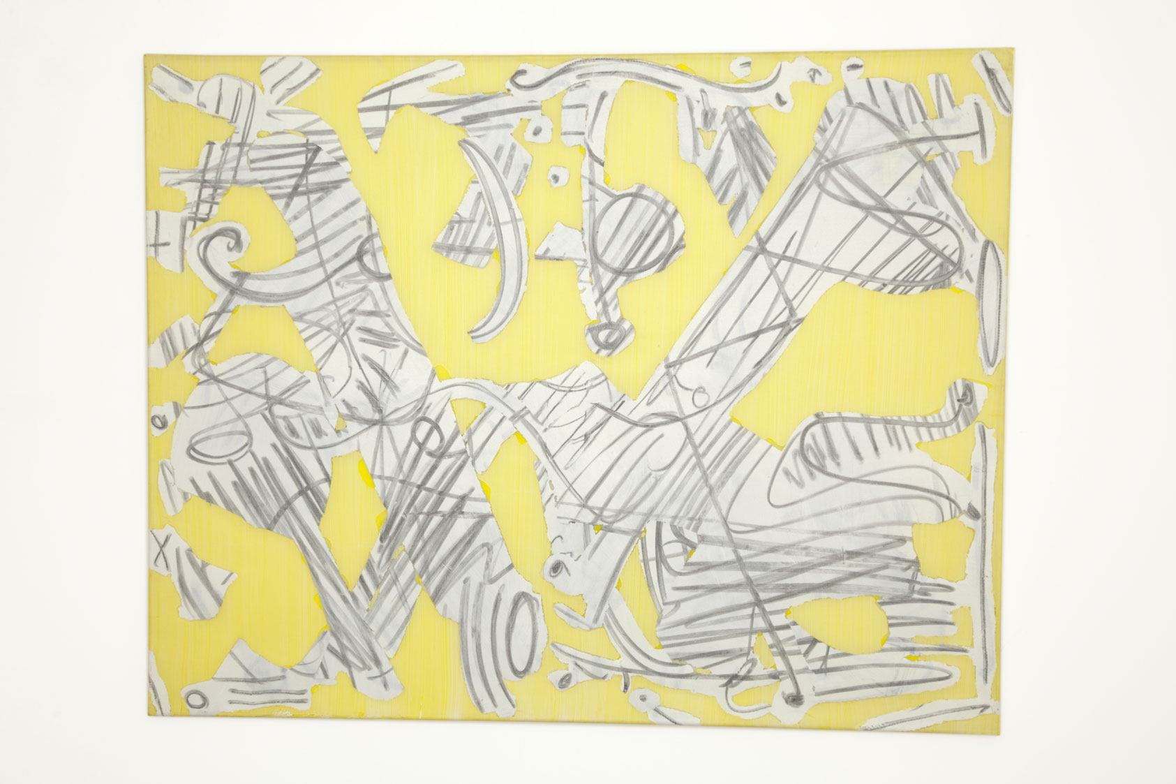 Tous ces procédés et ces matériaux finissent par se juxtaposer, s’entrelacer et se complexifier jusqu’à ce que soit obtenu un «feuilletage» inextricable de la surface, qui se constitue en «tableau». L’oeuvre est ainsi formée autant par ce qu’elle cache que par ce qu’elle révèle.