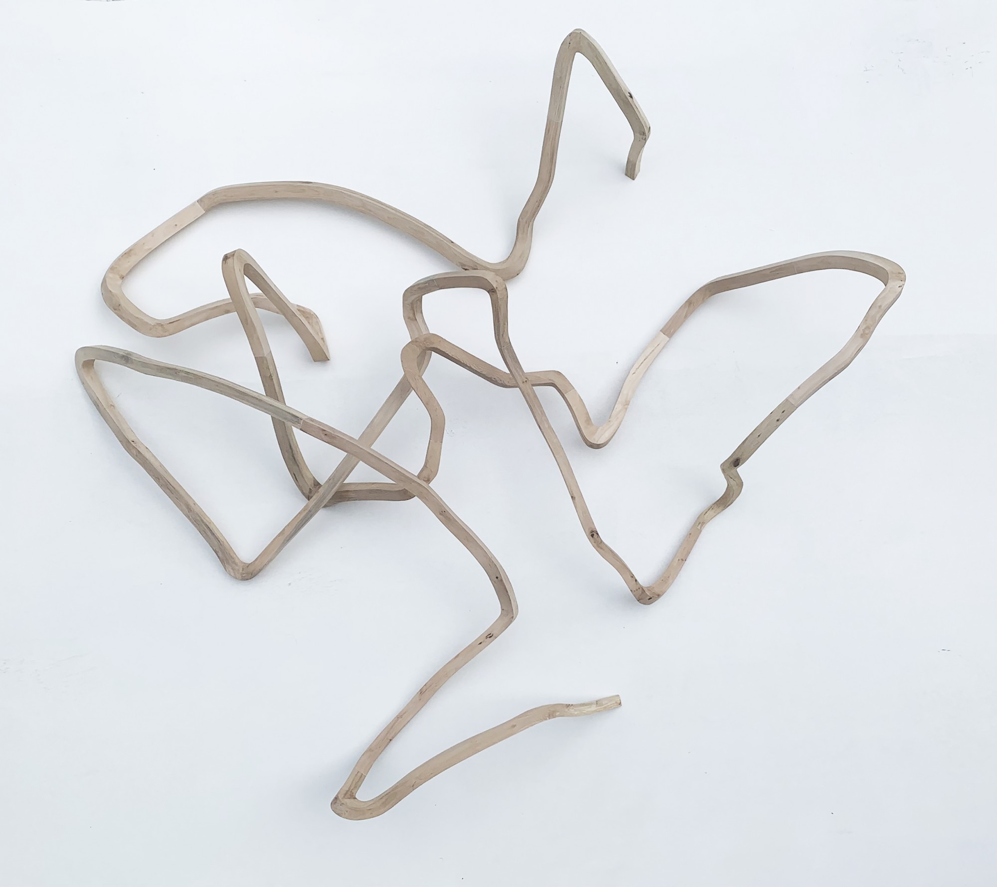 Dans le bois, ses gestes restent simples, humbles, bruts : équarrir, refendre, abouter, assembler, cheviller, coller, poncer... Son artisanat se veut délibérément minimal. Pas de démonstration de virtuosité ni de perfection de métier. Le savoir-faire ne l’intéresse que dans la mesure où il fait sens dans le processus constructif. Et si ses oeuvres restent proches de l’arbre et d’une dynamique de poussée végétale, elles n’en sont pas moins complètement recomposées.