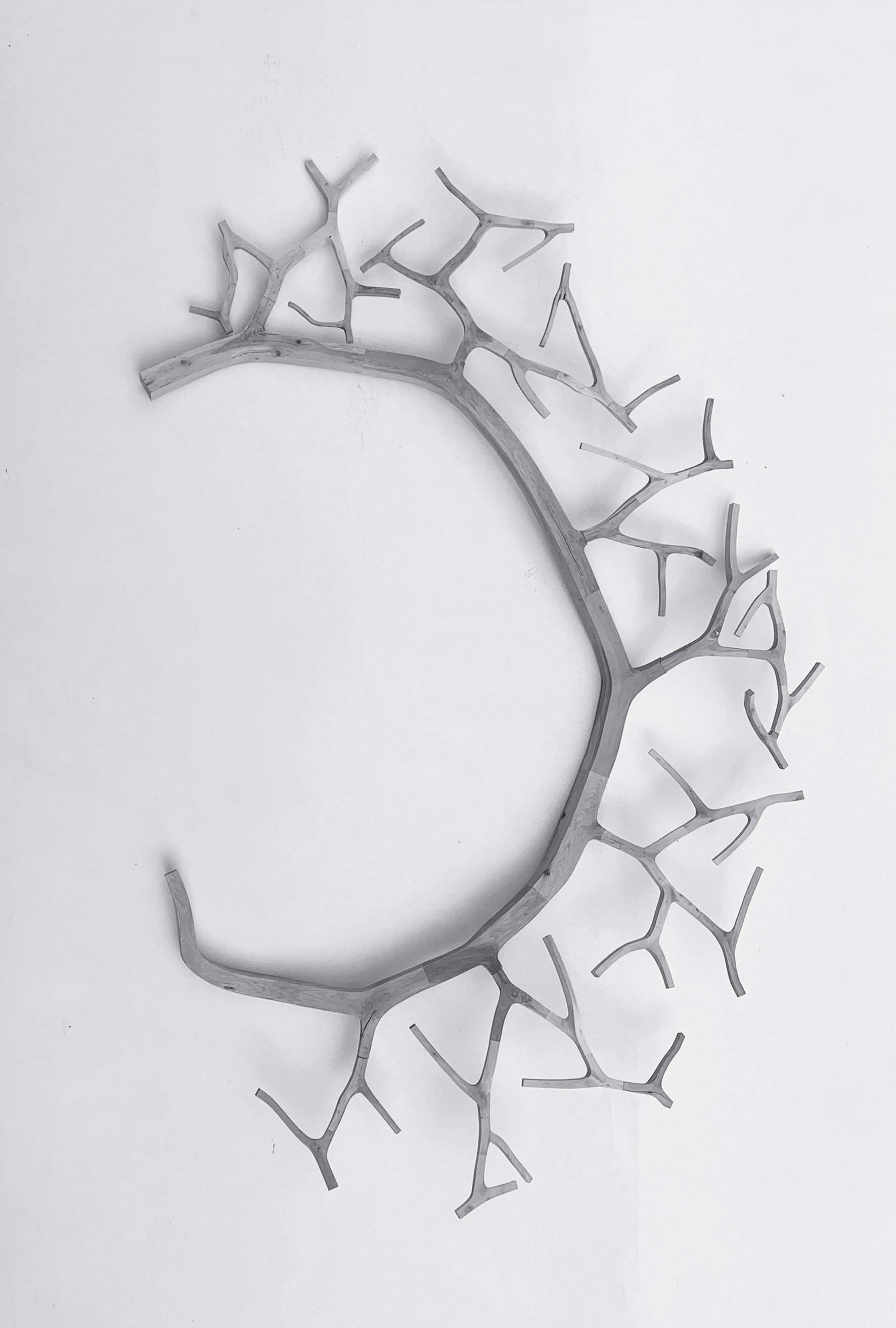 Par minces segments de section carrée qui rappellent le façonnage élémentaire des poutres, ses sculptures mettent bout à bout des segments qui tirent parti de la courbure de la branche, de ses ramifications et de ses mouvements naturels, mais leur en inventent d’autres aussi, surprenants, très graphiques et poétiques, qui les suspendent en état de grâce et de légèreté. Conjuguant chantiers de construction et histoire de l’art, ses inspirations formelles puisent aussi bien à sa fascination pour les ossatures des architectures navales et des charpentes de toitures, qu’à ses admirations artistiques contemporaines qui placent Giuseppe Penone, Toni Grand et David Nash au sommet de son panthéon personnel. Il aime aussi comparer sa démarche – lui qui oublie parfois de signer ses pièces – à celle des artistes aborigènes qui transmettent quelque chose qui les dépasse et qui est hors du temps. Car même si son langage sculptural dépouillé, silencieux et dépourvu de socles est clairement contemporain, Laurent de Pury se sent a-temporel et très loin des discours analytiques et critiques d’un certain art contemporain sur la société d’aujourd’hui. Il n’en est pas moins totalement engagé dans cette mission fondamentale de l’artiste qui est d’« entrer en résonance avec le monde ».