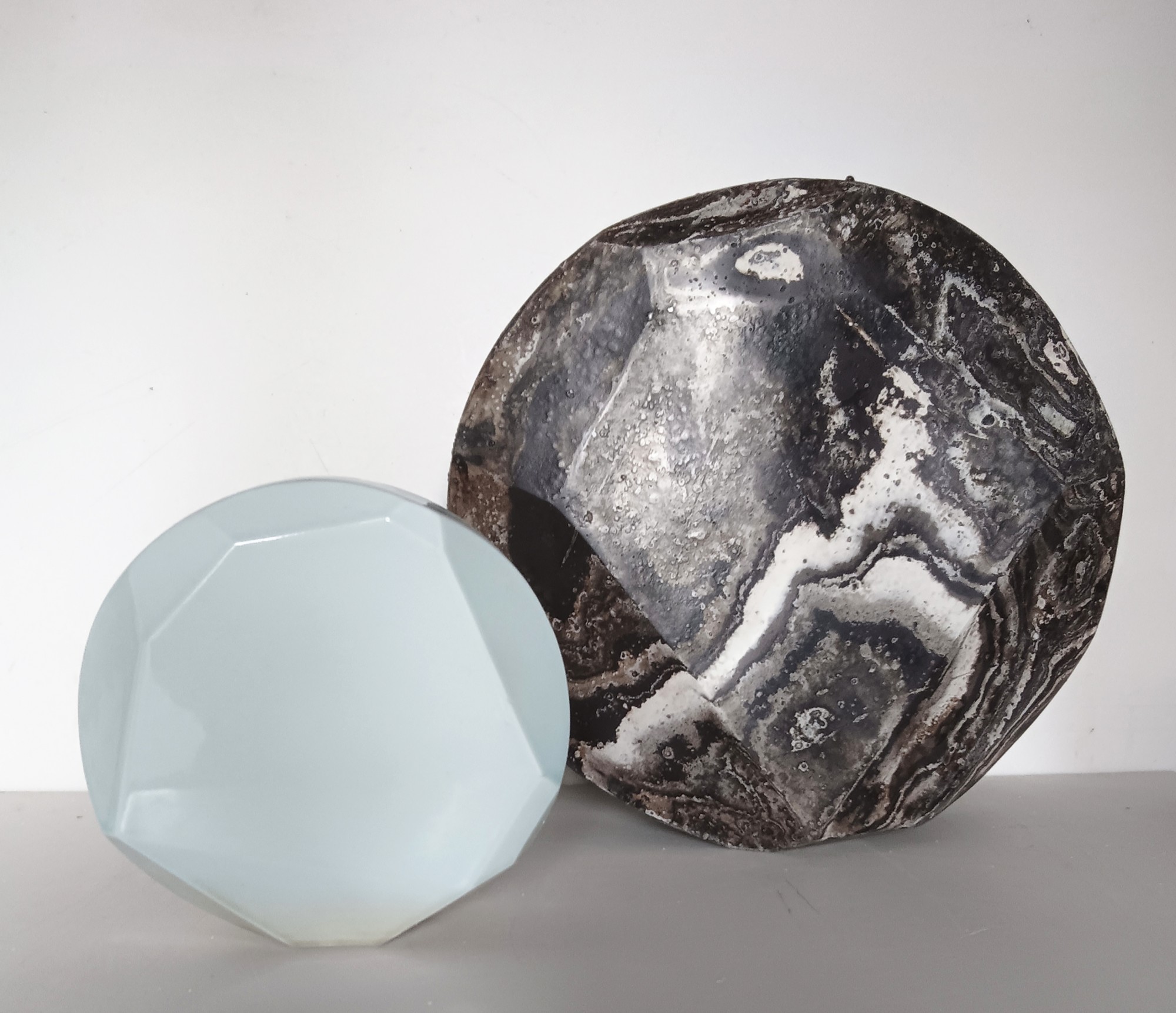 Il y a plus de 20 ans, je moulais déjà des pierres. Je réfléchissais, alors, au sens de la technique et à la perception des formes. Si je reprends l’archétype de la pierre en 2017, c’est pour aller encore plus radicalement vers son origine. Les pierres ont existées bien avant la céramique . En cuisant sur des supports des pierres trouvées, j’active deux principes fondamentaux de ce médium: la mise en forme et la transformation par le feu. La forme n’est plus issue de la plasticité du matériau, mais elle est forgée par la chaleur et les lois de la gravité. Une sorte de sculpture par le feu. La lente formation de millions d’années, provenant du fortement des plaques tectoniques, est re-visitée par une cuisson de 24h. Les pierres sont transformées une seconde fois par une pensée humaine. Je re-interprète ainsi les observations faites par les premiers artisans, il y a plus de 15'000 ans. Une brève histoire de l’humanité en quelque sorte.