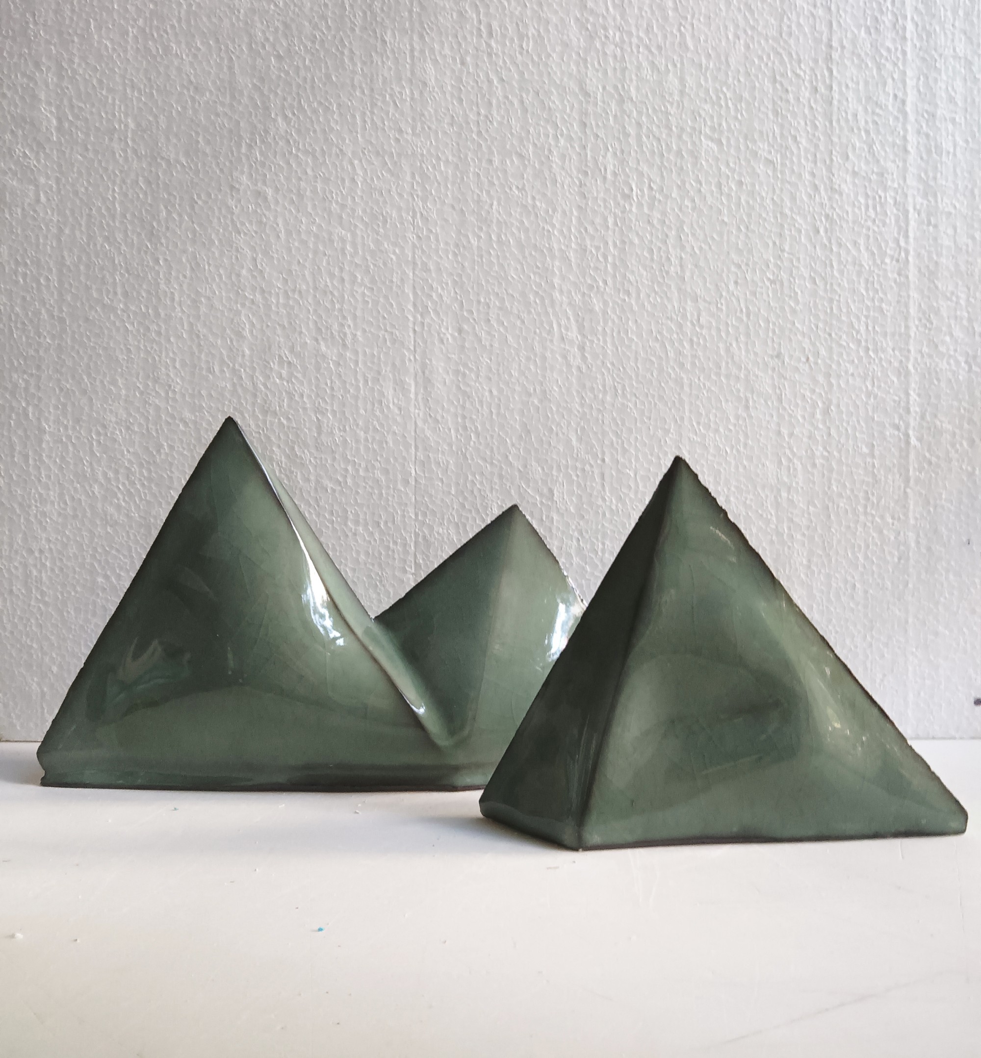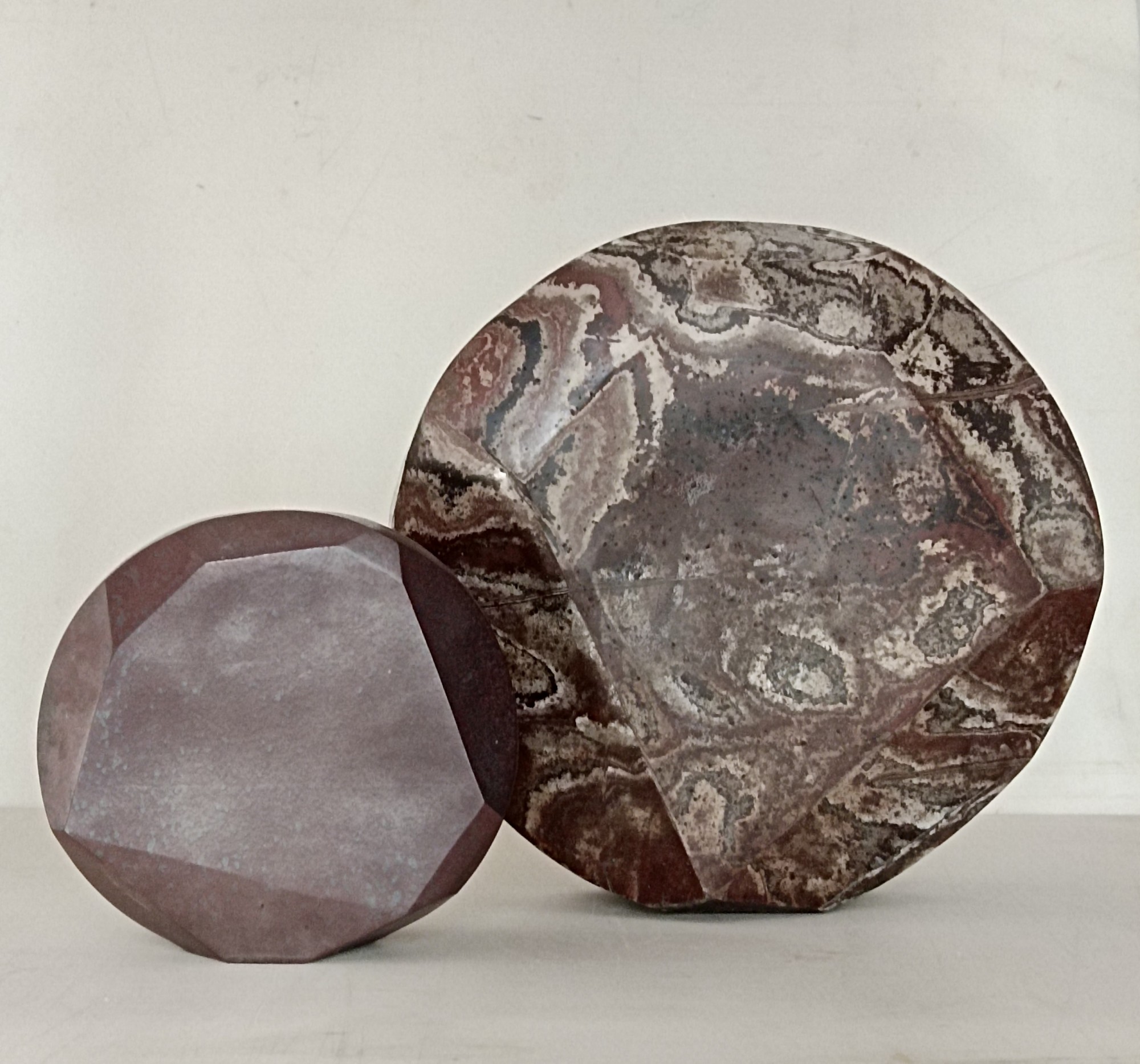 Il y a plus de 20 ans, je moulais déjà des pierres. Je réfléchissais, alors, au sens de la technique et à la perception des formes. Si je reprends l’archétype de la pierre en 2017, c’est pour aller encore plus radicalement vers son origine. Les pierres ont existées bien avant la céramique . En cuisant sur des supports des pierres trouvées, j’active deux principes fondamentaux de ce médium: la mise en forme et la transformation par le feu. La forme n’est plus issue de la plasticité du matériau, mais elle est forgée par la chaleur et les lois de la gravité. Une sorte de sculpture par le feu. La lente formation de millions d’années, provenant du fortement des plaques tectoniques, est re-visitée par une cuisson de 24h. Les pierres sont transformées une seconde fois par une pensée humaine. Je re-interprète ainsi les observations faites par les premiers artisans, il y a plus de 15'000 ans. Une brève histoire de l’humanité en quelque sorte.