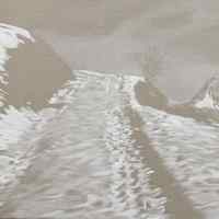 Avec “ Fastizis ”, elle devient épure, libérée de toute autre couleur, structurée dans un graphisme proche du dessin qui affirme pourtant la matière même de la neige et révèle les marques de la présence humaine.