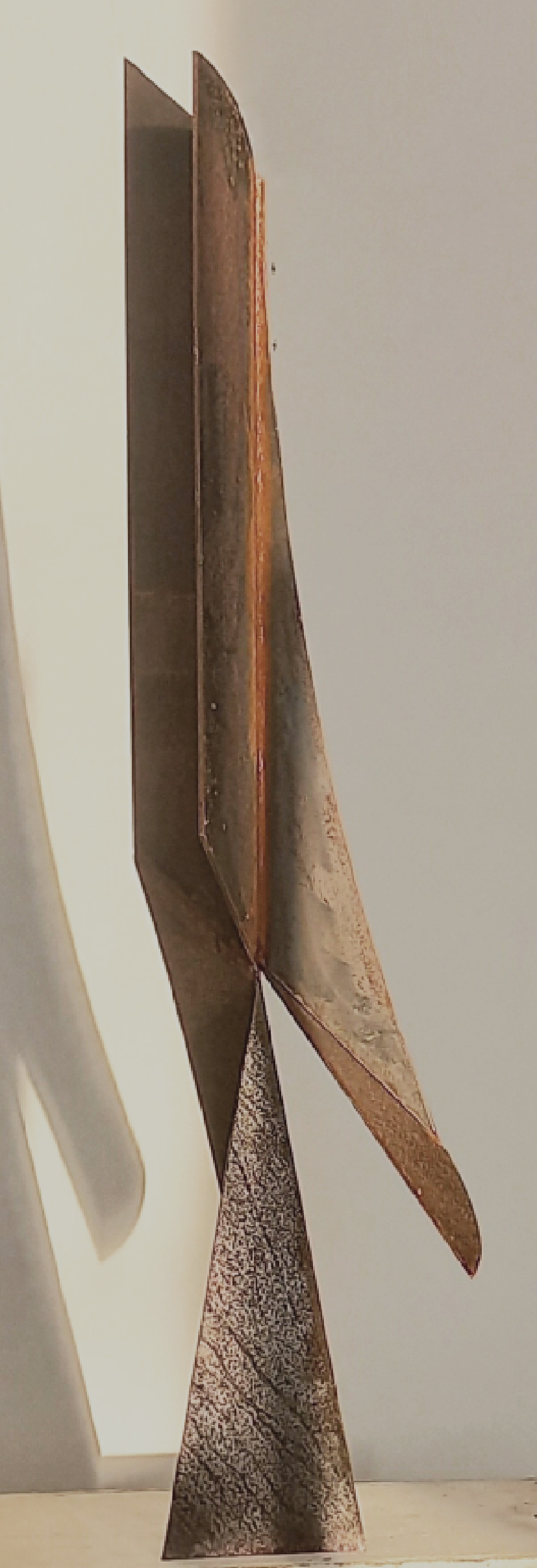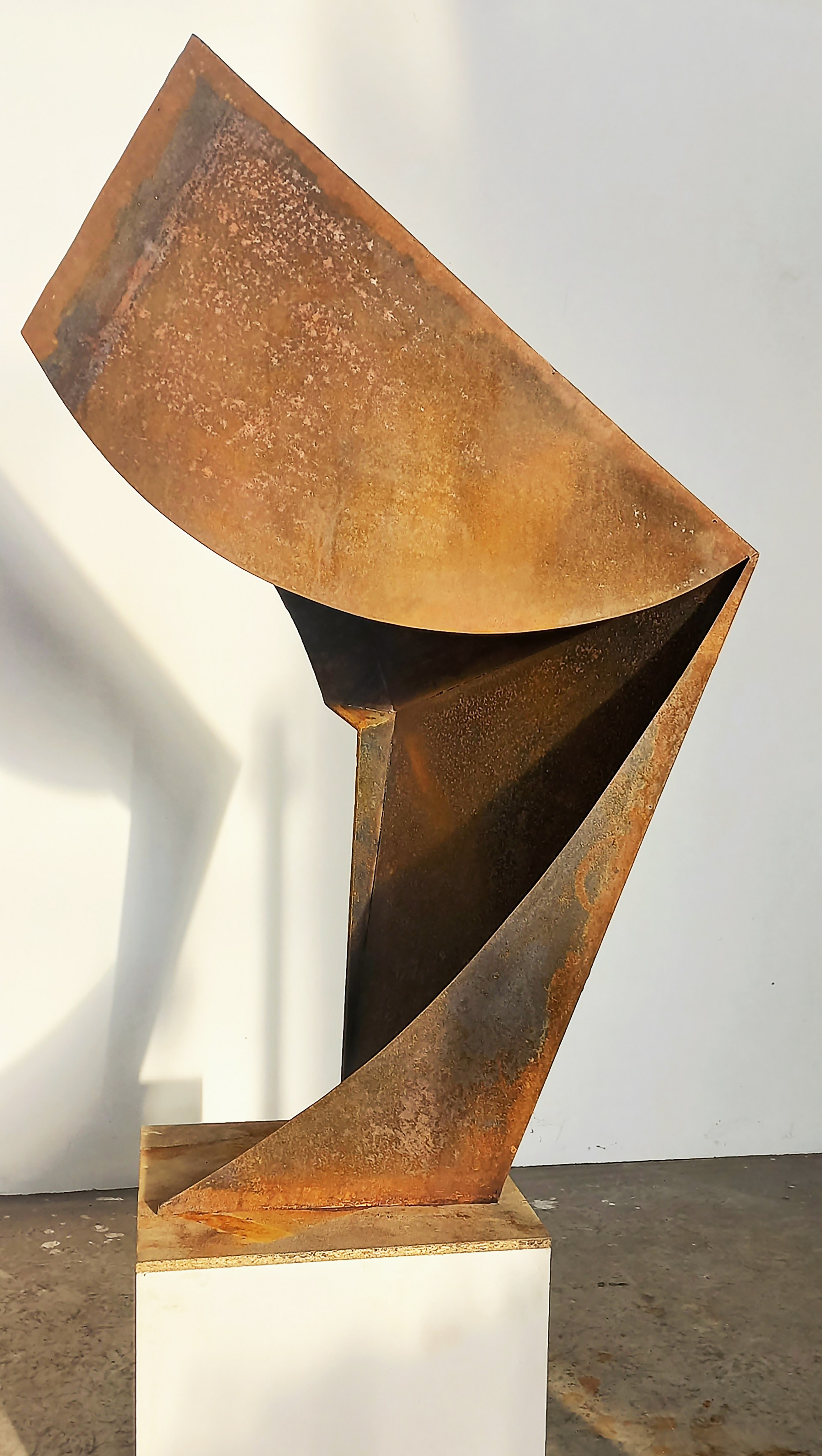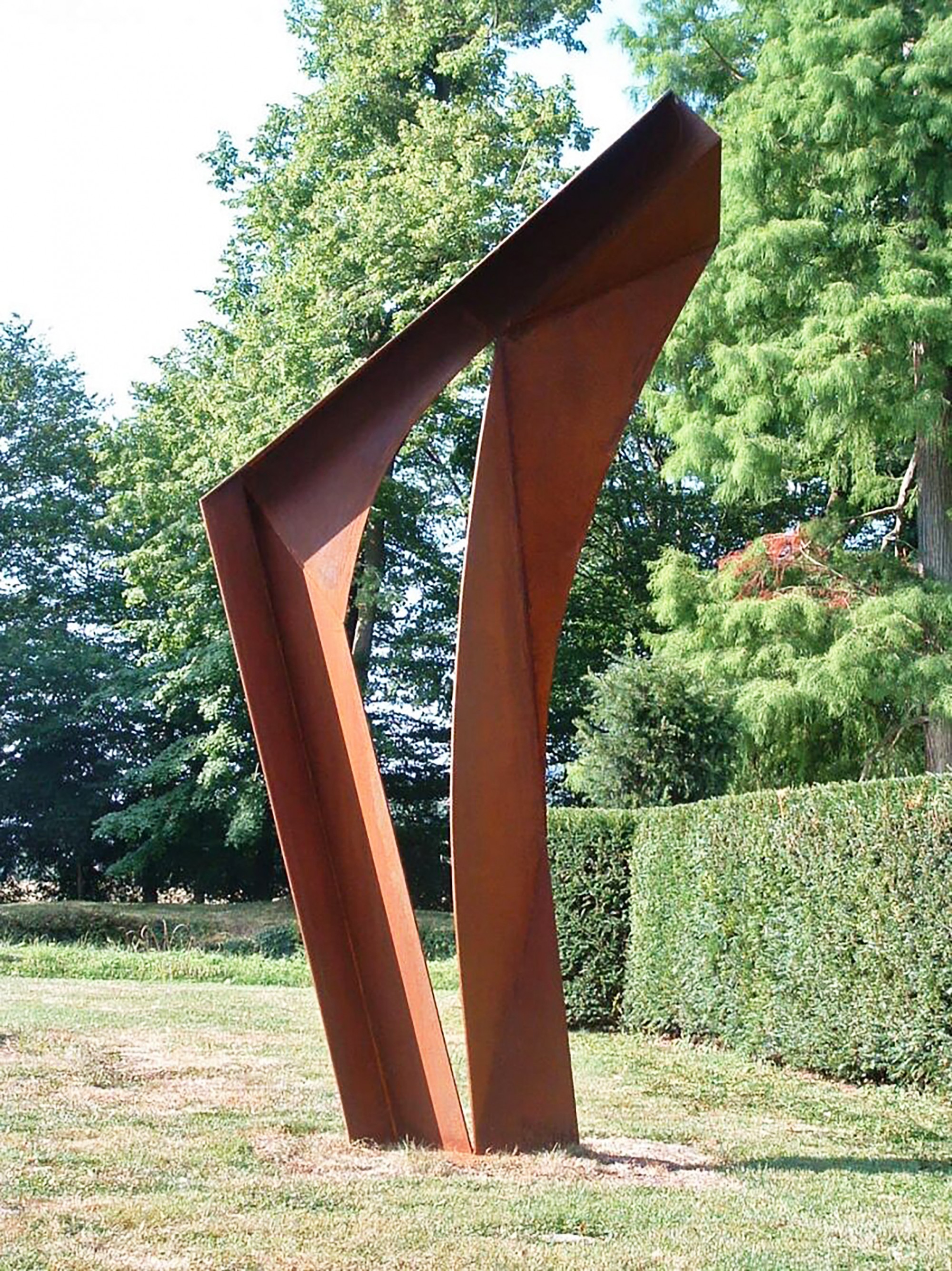 Et le sculpteur puise aux qualités de la peinture pour donner, au moyen des patines, couleur, chaleur, vie (et non expression) à ces panneaux de métal. À nous de saisir l’instant où la matière a réalisé son rêve ! Un élan maîtrisé mais gracieux s’accorde avec la perception de la lumière