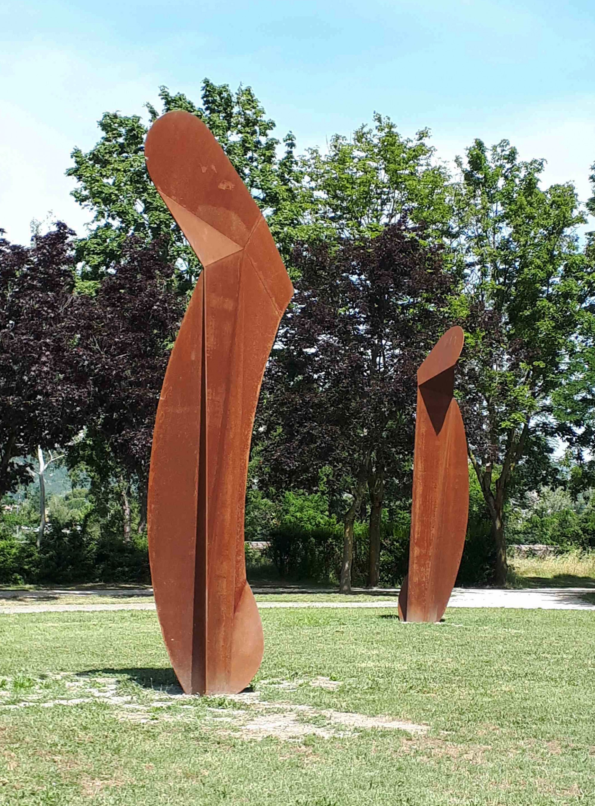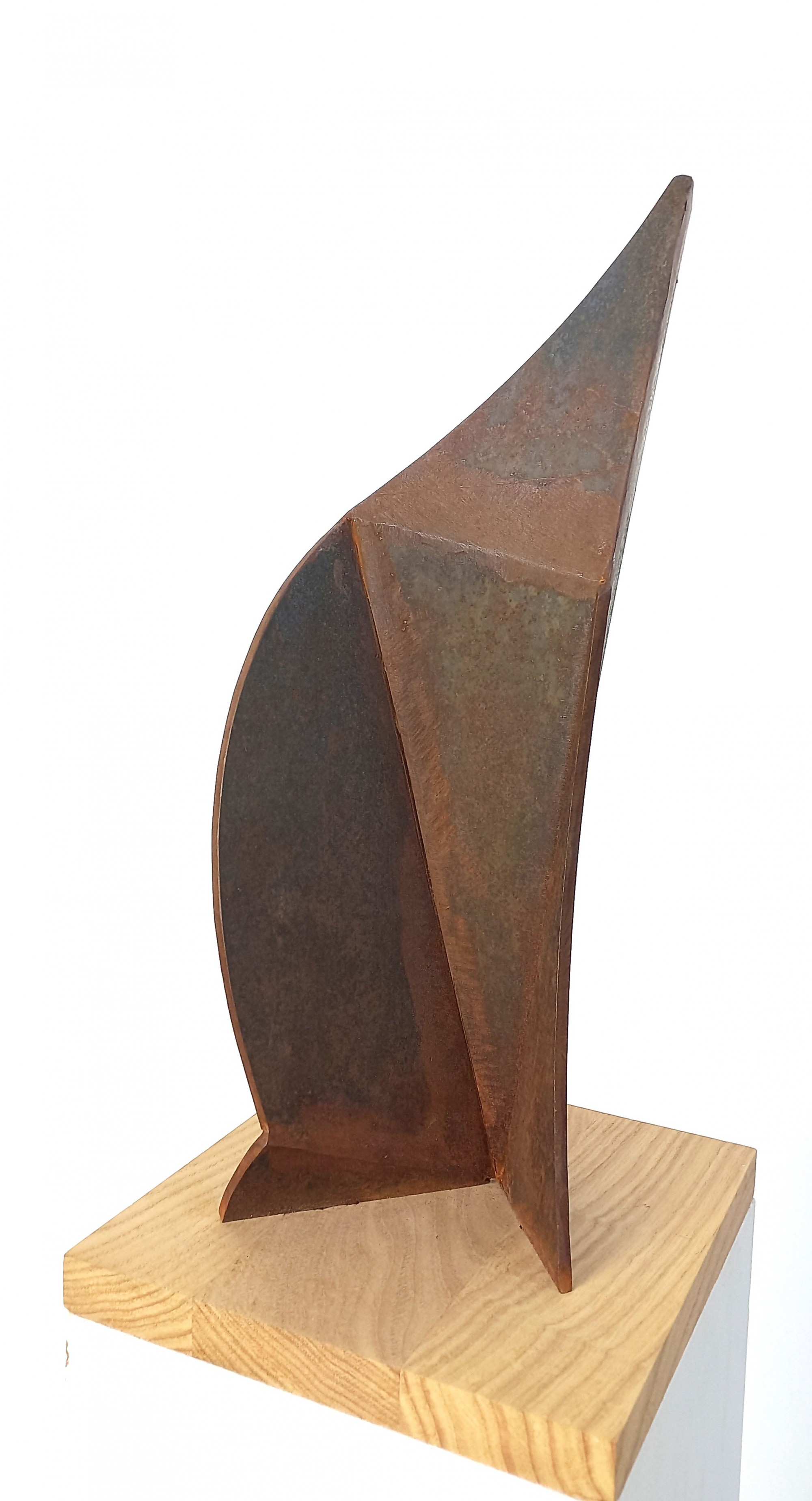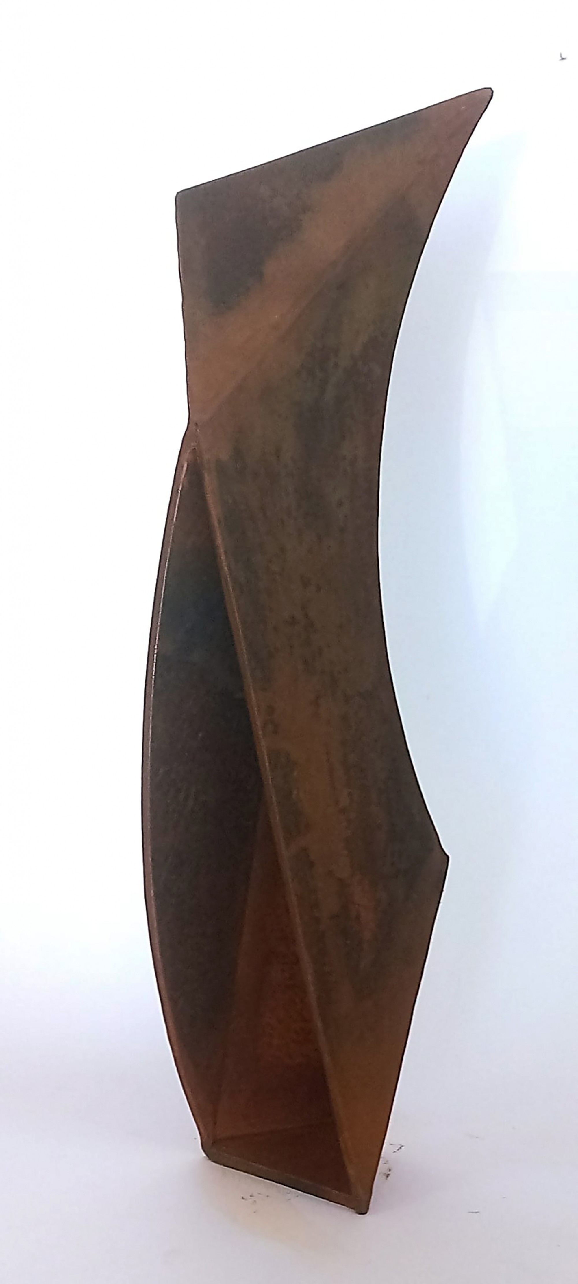Et le sculpteur puise aux qualités de la peinture pour donner, au moyen des patines, couleur, chaleur, vie (et non expression) à ces panneaux de métal. À nous de saisir l’instant où la matière a réalisé son rêve ! Un élan maîtrisé mais gracieux s’accorde avec la perception de la lumière