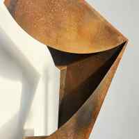 En disposant ses panneaux de métal selon des incidences subtiles, Jean-Patrice Rozand construit des pièges à lumière. Pour en déployer les nuances, en modeler la matière ou la transparence. Grâce à la maîtrise des patines, il leur confère couleur et velouté tandis qu’au fil des heures, son intensité varie, distribuant lentement les masses autour des axes constitués par la jonction des plans.